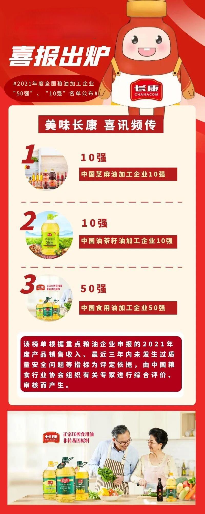 喜訊!長(zhǎng)康榮登2021年全國(guó)糧油加工企業(yè)“50強(qiáng)”“10強(qiáng)”榜單!