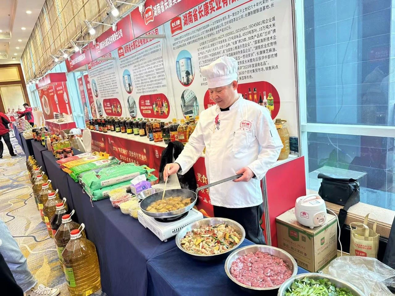 在“健康湘菜”創(chuàng)新融合菜品暨特色食材展上,湘菜名店、健康湘菜、湘米、湘茶油展臺(tái)接連亮相。長康作為“湖南好糧油”代表品牌及2024湘菜年度盛典重點(diǎn)合作伙伴,攜旗下系列米、油、調(diào)味品重磅亮相,在大廚的巧手下現(xiàn)場烹飪經(jīng)典湘菜,并熱情介紹經(jīng)典湘菜的調(diào)味技巧,讓在場觀眾大飽口福。
