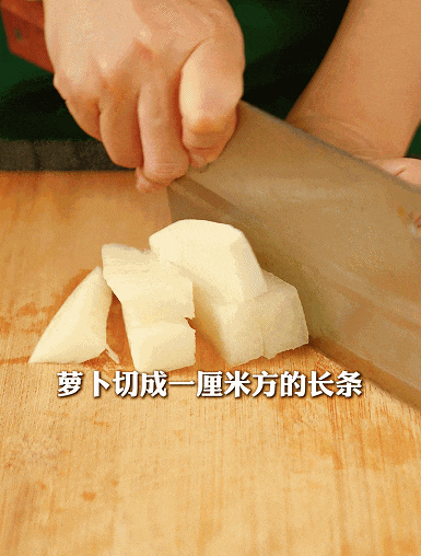 1.蘿卜先切成1厘米方的長(zhǎng)條,蘿卜1500克,鹽60克,加比平時(shí)做菜多一倍的鹽,腌1個(gè)小時(shí),去掉蘿卜的辛辣味。